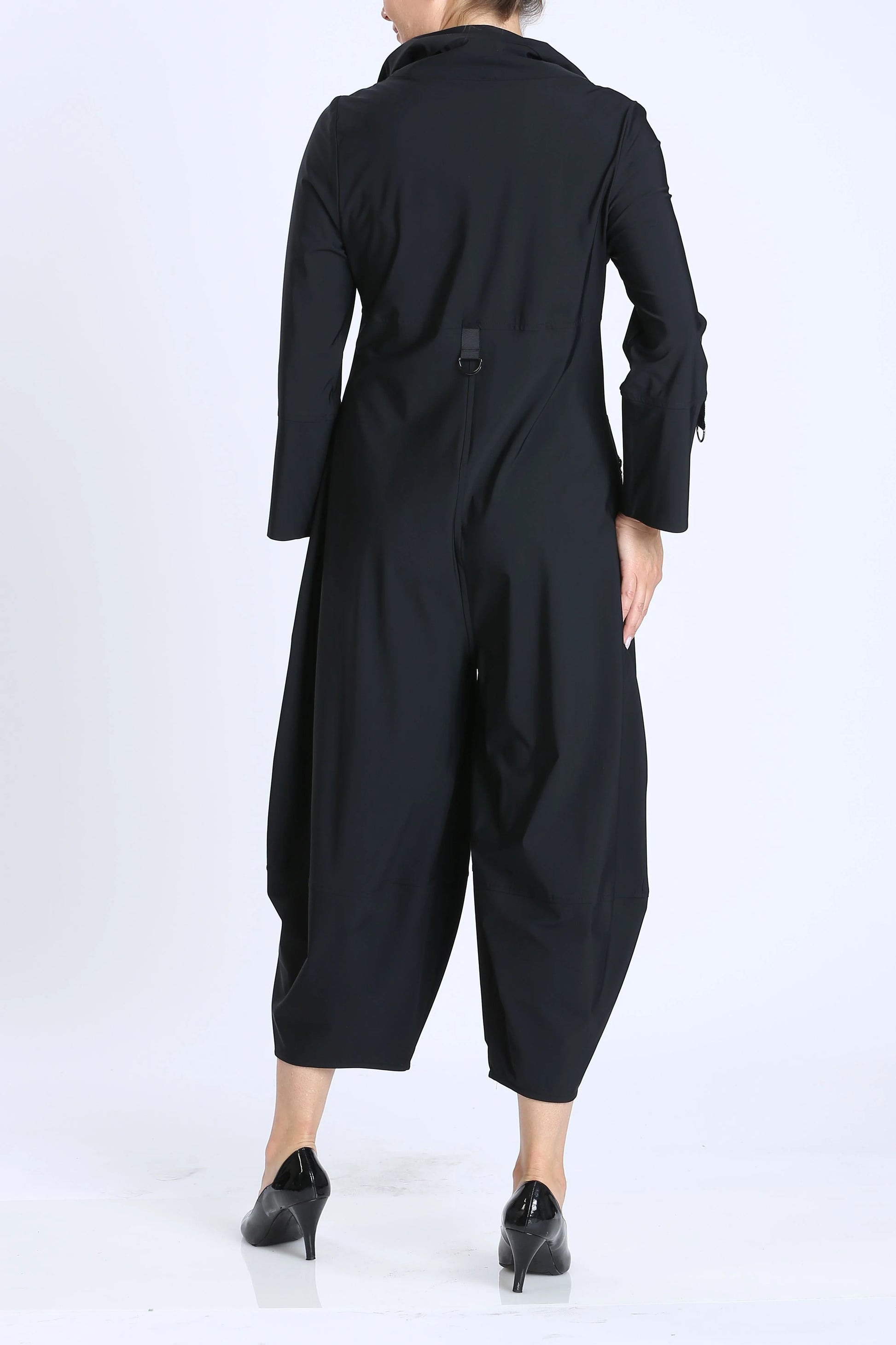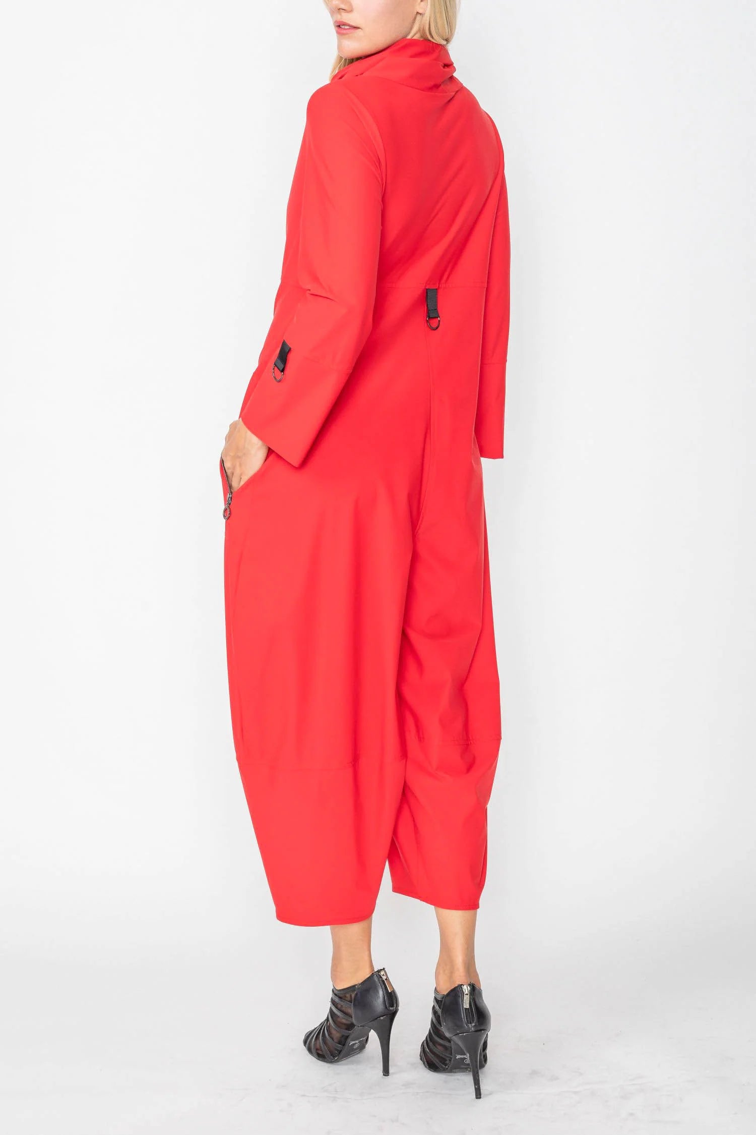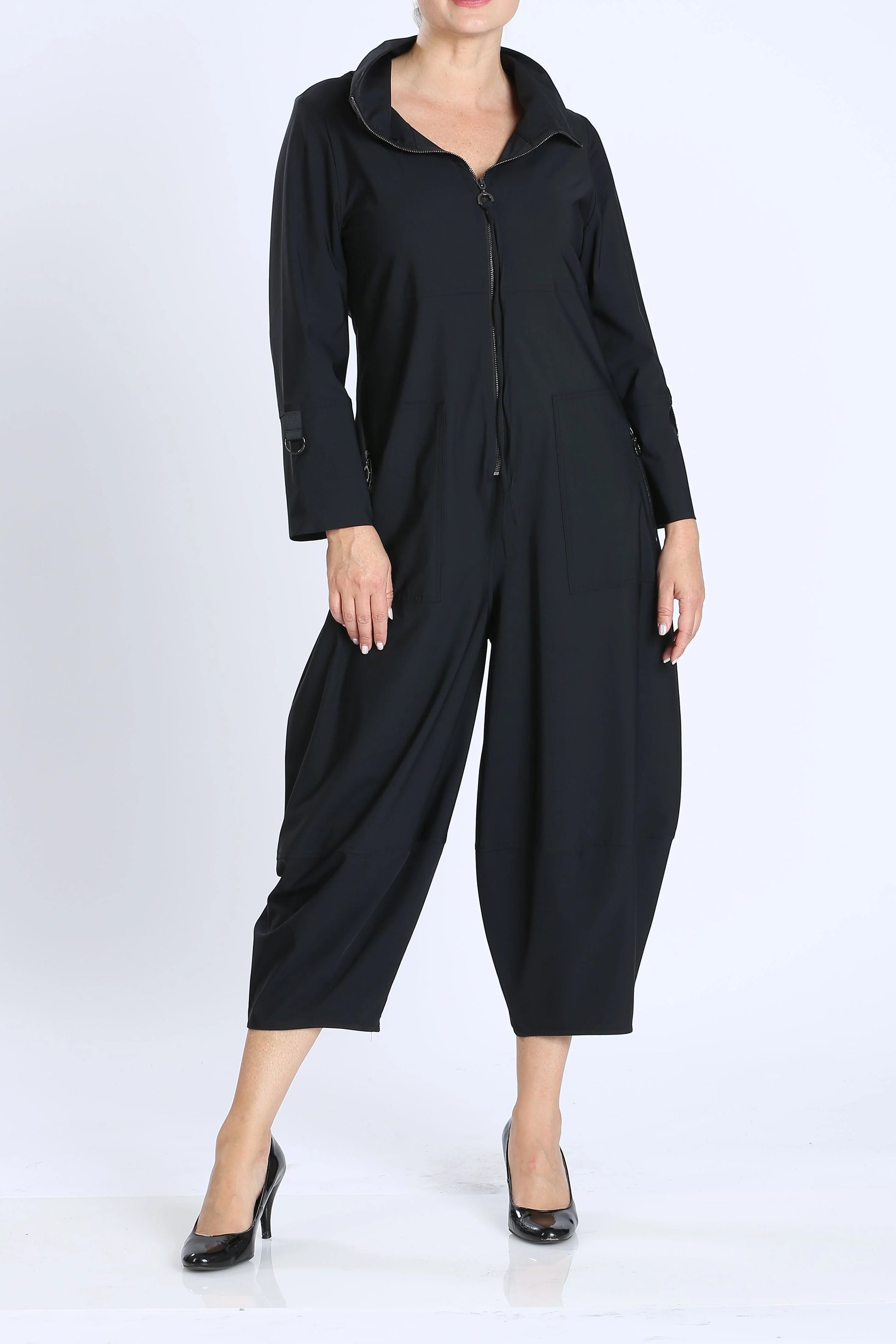 You can dress up with your favorite pair of heels or dress down with a stylish sneaker. The wide, cropped leg allows for showing off your cute shoes. In addition, this material makes this jumpsuit the perfect travel item for easy use!