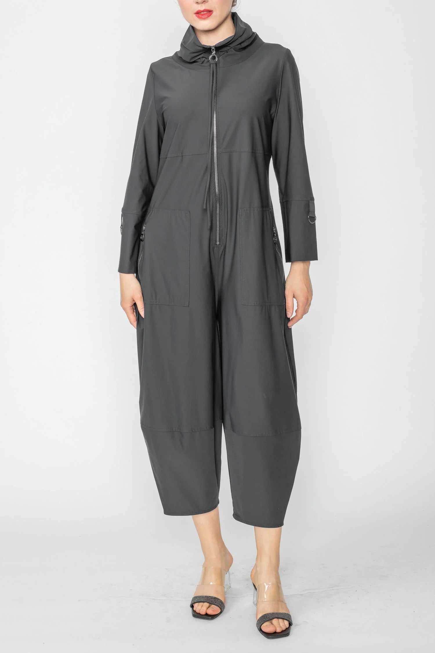 - Zip up front and pockets