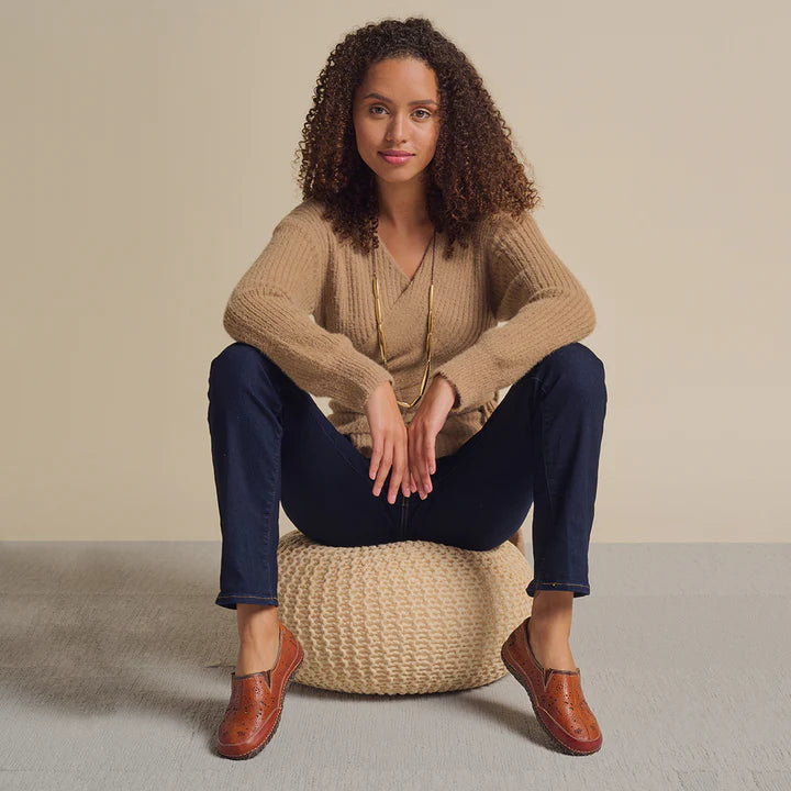 French inspired, hand painted leather loafer featuring flower perforated design and covered elastic goring.